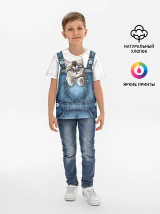 Детская базовая футболка / КОТЕНОК В КАРМАНЕ