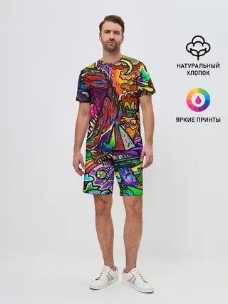 Мужской свитшот базовый / Цветные треугольники_ салатовы
