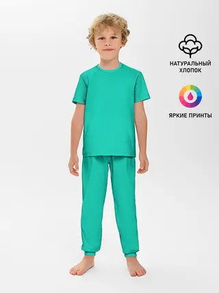 Детская пижама с брюками / Бискайский зеленый без рисунка