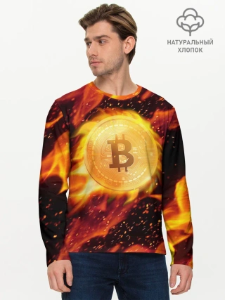 Мужской лонгслив базовый / БИТКОИН ОГОНЬ