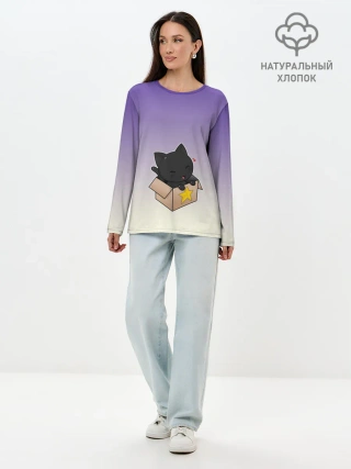 Лонгслив женский. Хлопок / черный котенок в коробке