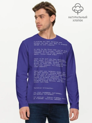 Мужской лонгслив базовый / Синий экран | Текст ошибки