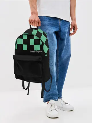 Рюкзак детский / Kamado Tanjiro зеленые квадраты