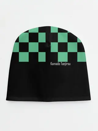 Детская шапка / Kamado Tanjiro зеленые квадраты