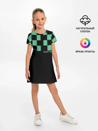 Детское платье / Kamado Tanjiro зеленые квадраты