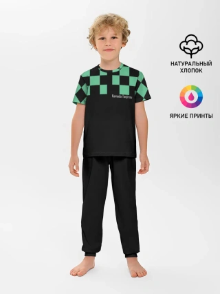 Детская пижама с брюками / Kamado Tanjiro зеленые квадраты