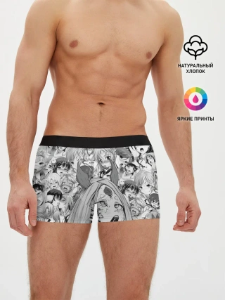Мужские трусы боксеры / KAGUYA AHEGAO чернобелое / КАГУЯ АХЕГАО