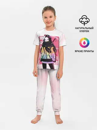 Детская пижама с брюками / Kimetsu no yaiba розовое