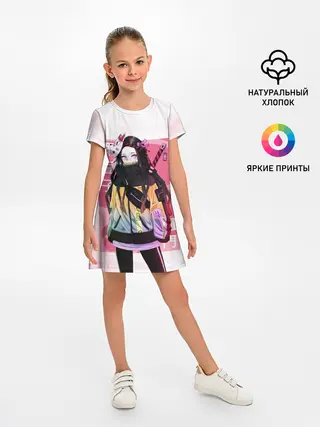 Детская базовая футболка / Kimetsu no yaiba розовое