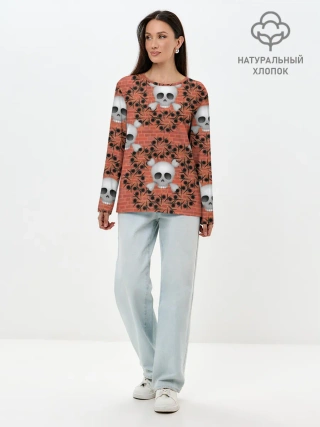 Лонгслив женский. Хлопок / Кирпичные черепа