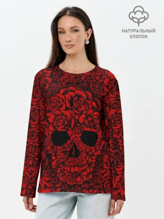 Лонгслив женский. Хлопок / ЦВЕТОЧНЫЙ ЧЕРЕП