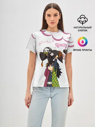 Женская базовая футболка / Гию и Незуко Kimetsu no Yaiba