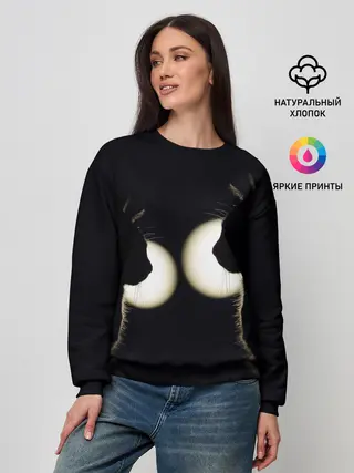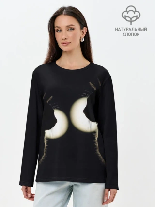 Лонгслив женский. Хлопок / Пара | Силуэты черных кошек