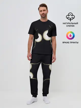 Мужская пижама с брюками / Пара | Силуэты черных кошек