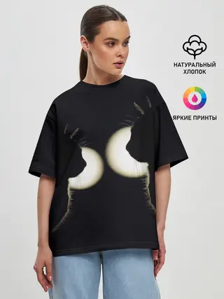 Женская футболка оверсайз / Пара | Силуэты черных кошек