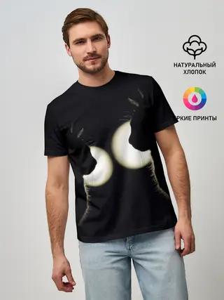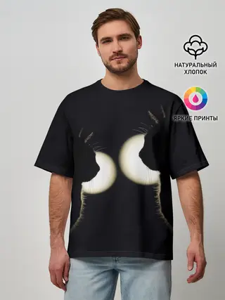 Мужская футболка оверсайз / Пара | Силуэты черных кошек