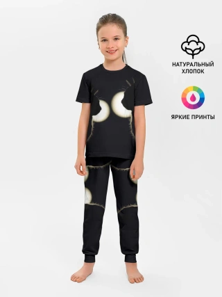 Детская пижама с брюками / Пара | Силуэты черных кошек