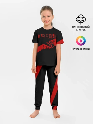 Детская пижама с брюками / Чёрный клевер Аста красная полоса