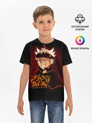 Детская базовая футболка / Чёрный клевер улыбка Аста