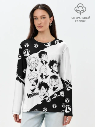 Лонгслив женский. Хлопок / ВОЛЕЙБОЛ!! семь персонажей