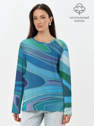 Лонгслив женский. Хлопок / Морская волна
