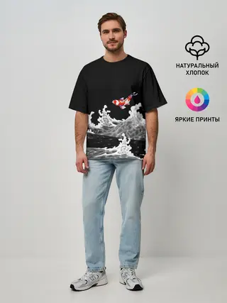 Мужская футболка оверсайз / Карп Кои Волна Япония Рыба