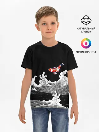 Детская базовая футболка / Карп Кои Волна Япония Рыба
