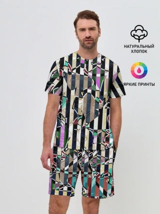 Мужской костюм с шортами / Полосатый абстрактный узор