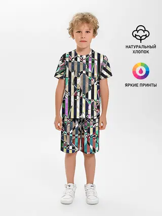 Детская пижама с шортами / Полосатый абстрактный узор
