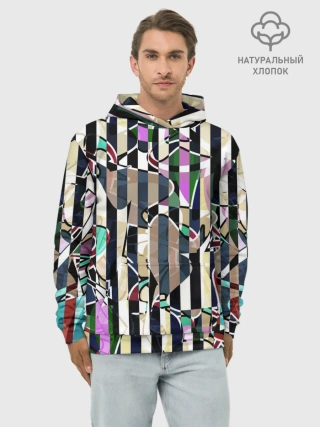 Худи мужской база хлопок / Полосатый абстрактный узор