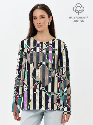 Лонгслив женский. Хлопок / Полосатый абстрактный узор
