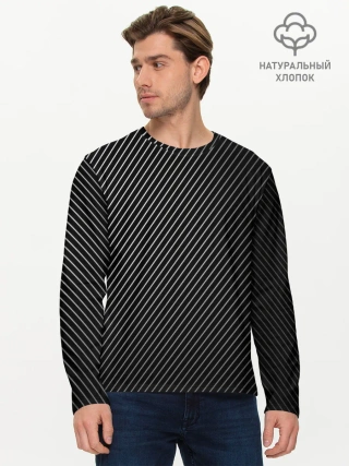 Мужской лонгслив базовый / Черный фон в белую полоску