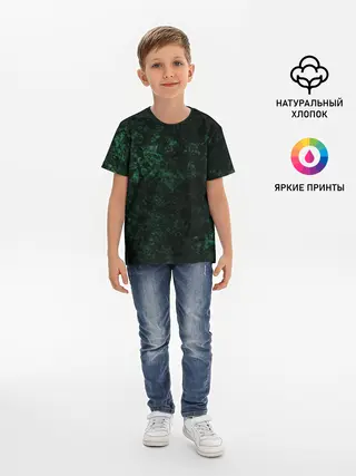 Детская базовая футболка / Темно-зеленый мраморный узор