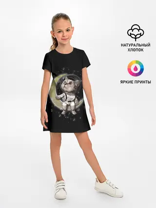 Детская базовая футболка / КОТИК НА ЛУНЕ