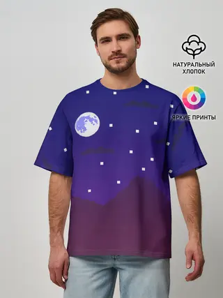 Мужская футболка оверсайз / Пиксельная ночь | 8 bit