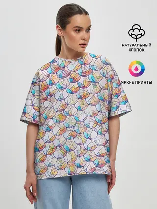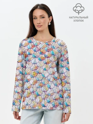 Лонгслив женский. Хлопок / Разноцветная чешуя