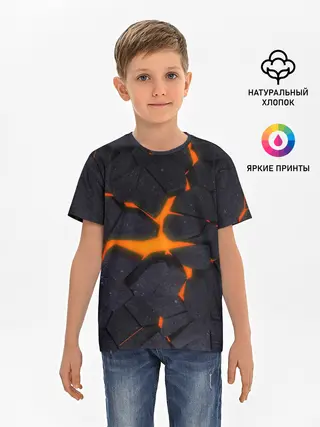 Детская базовая футболка / ТРЕЩИНЫ ЗЕМЛИ | 3D CRACKS | НЕОН
