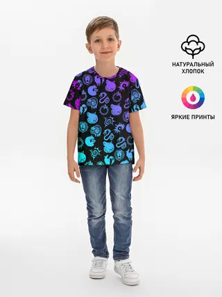 Детская базовая футболка / 7 СМЕРТНЫХ ГРЕХОВ НЕОН ЭМБЛЕМЫ