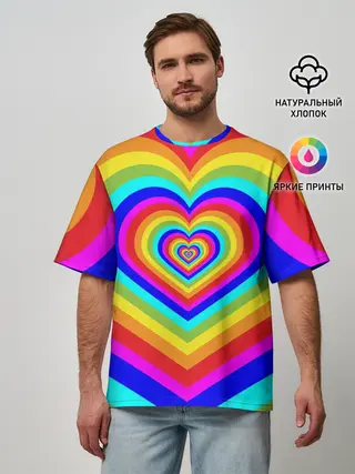 Мужская футболка оверсайз / Цветные сердца | Colored hearts