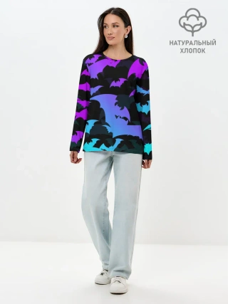 Лонгслив женский. Хлопок / ЛЕТУЧИЕ МЫШИ ХЕЛЛОУИН НЕОН / HALLOWEEN NEON