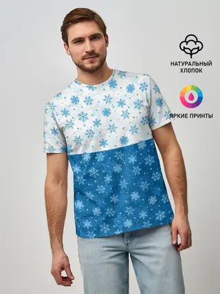 Мужская базовая футболка / Светло-Тёмные Снежинки