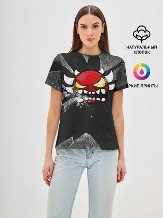 Женская базовая футболка / Геометри Даш осколки | Geometry Dash