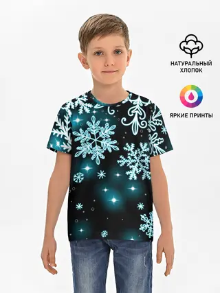 Детская базовая футболка / Космические снежинки