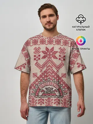 Мужская футболка оверсайз / Славянская вышивка | Узоры Руси