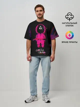 Мужская футболка оверсайз / Игра в кальмара глитч