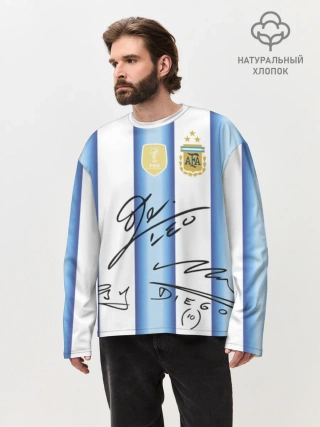 Мужской лонгслив оверсайз хлопок / Аргентина автографы футболистов