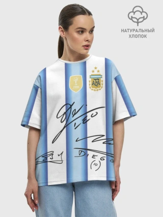 Женская футболка оверсайз хлопок / Аргентина автографы футболистов