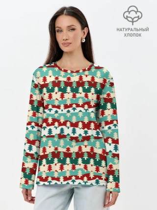 Лонгслив женский. Хлопок / Ёлочки