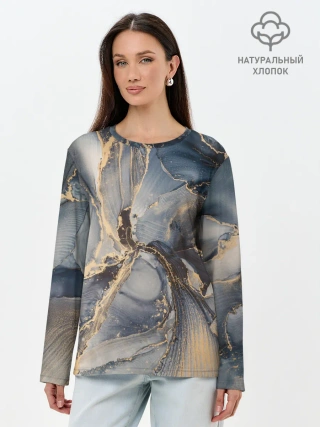 Лонгслив женский. Хлопок / Fluid art ink mix