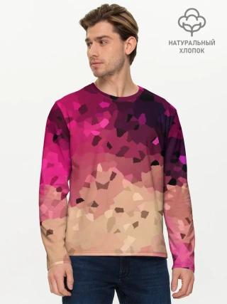 Мужской лонгслив базовый / Бежево-малиновый абстрактный
